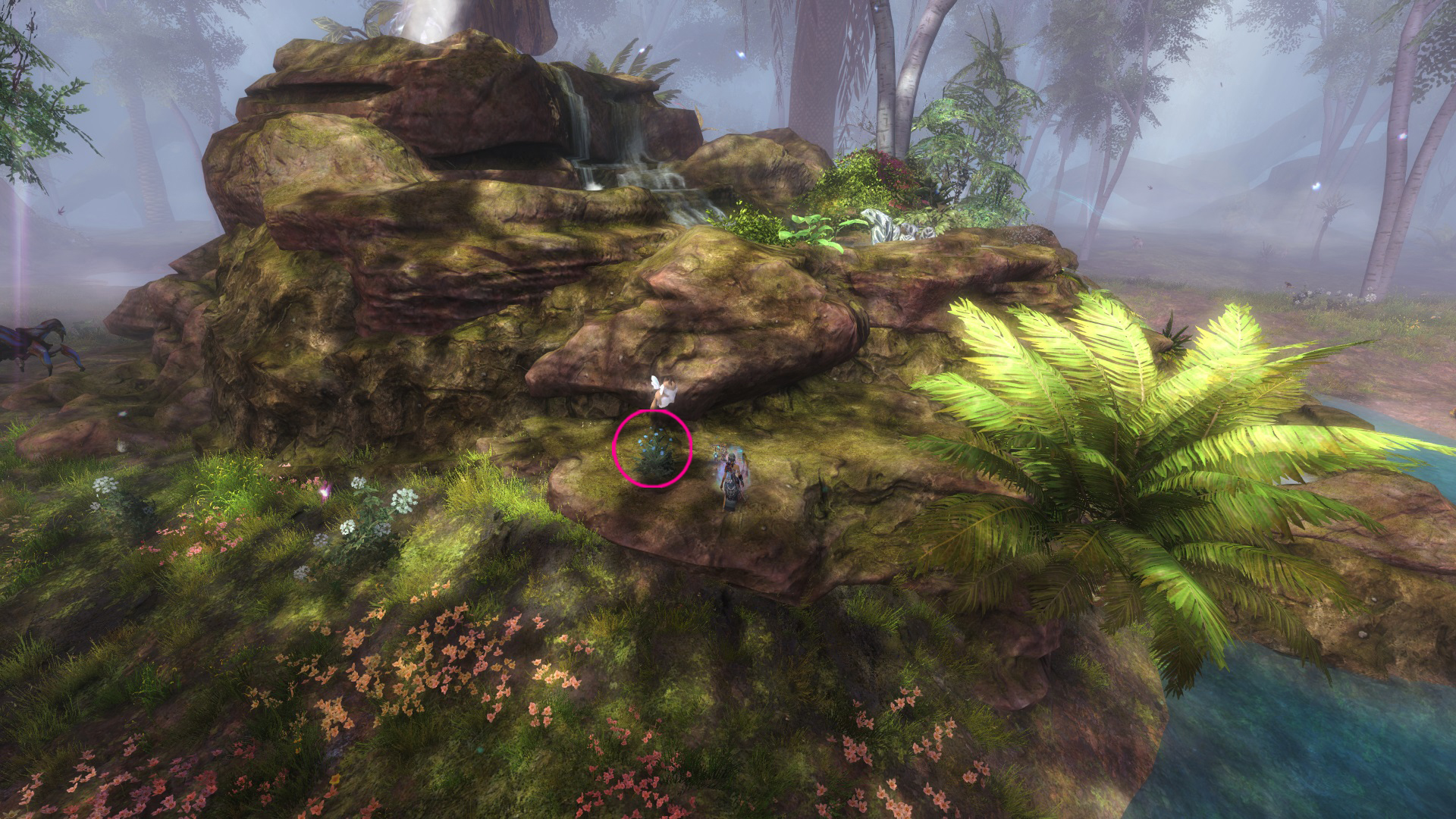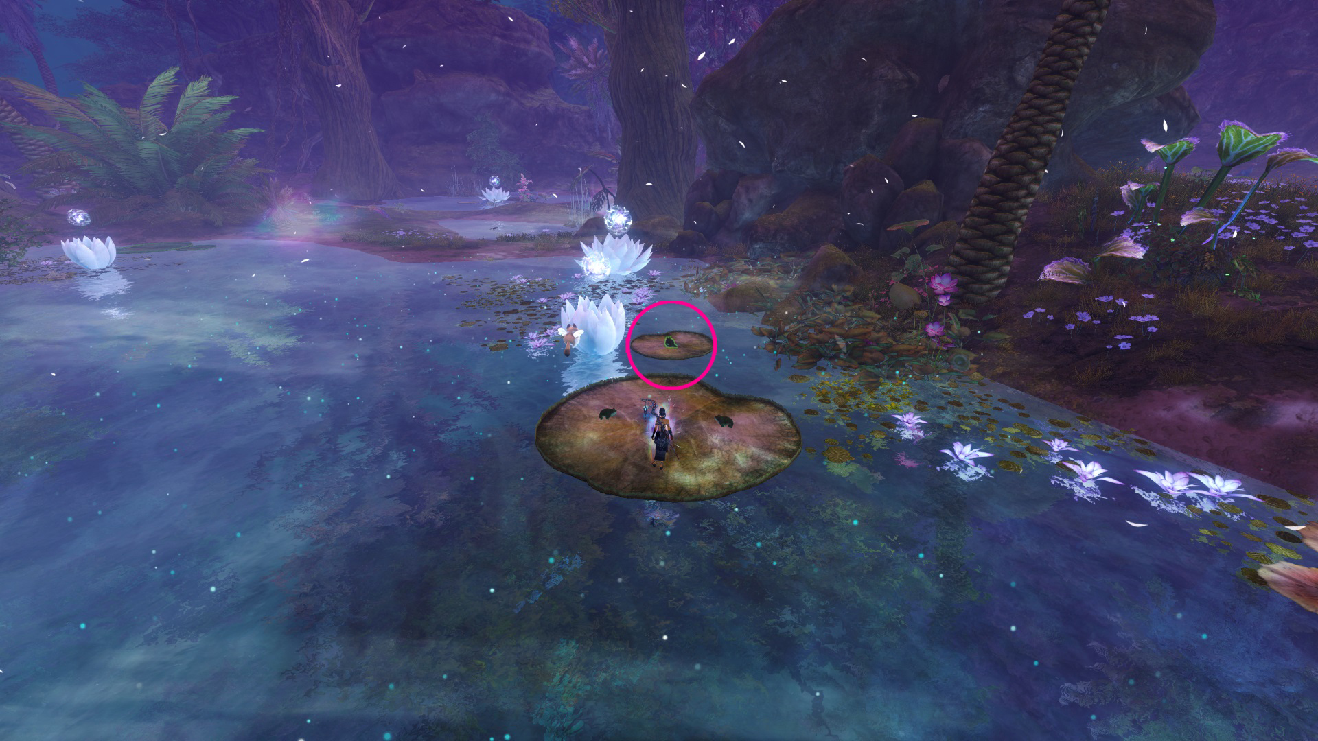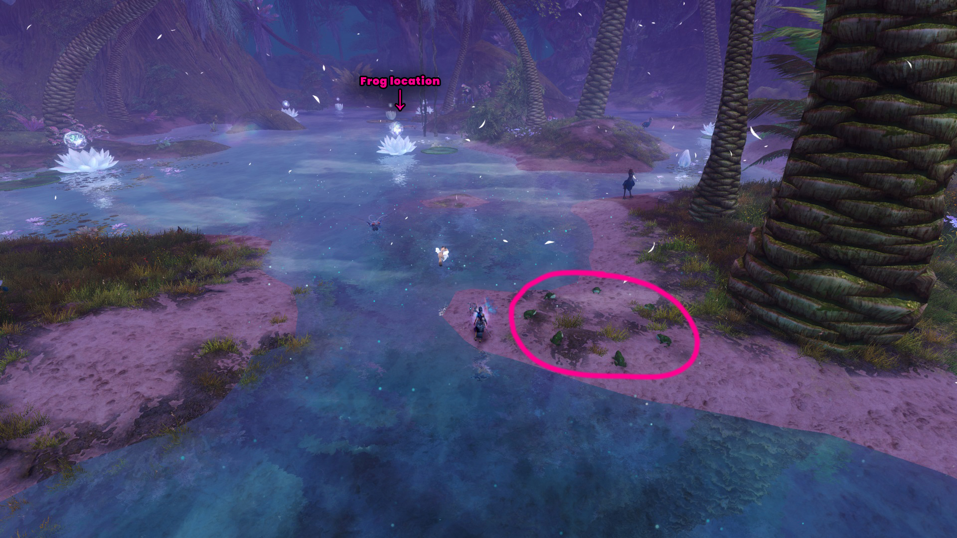 Go to the Foothold Bivouac Waypoint – [&BMAPAAA=], then head west. You’ll find the frog on a lily pad floating on the water, and the frog ring is just west of the frog.