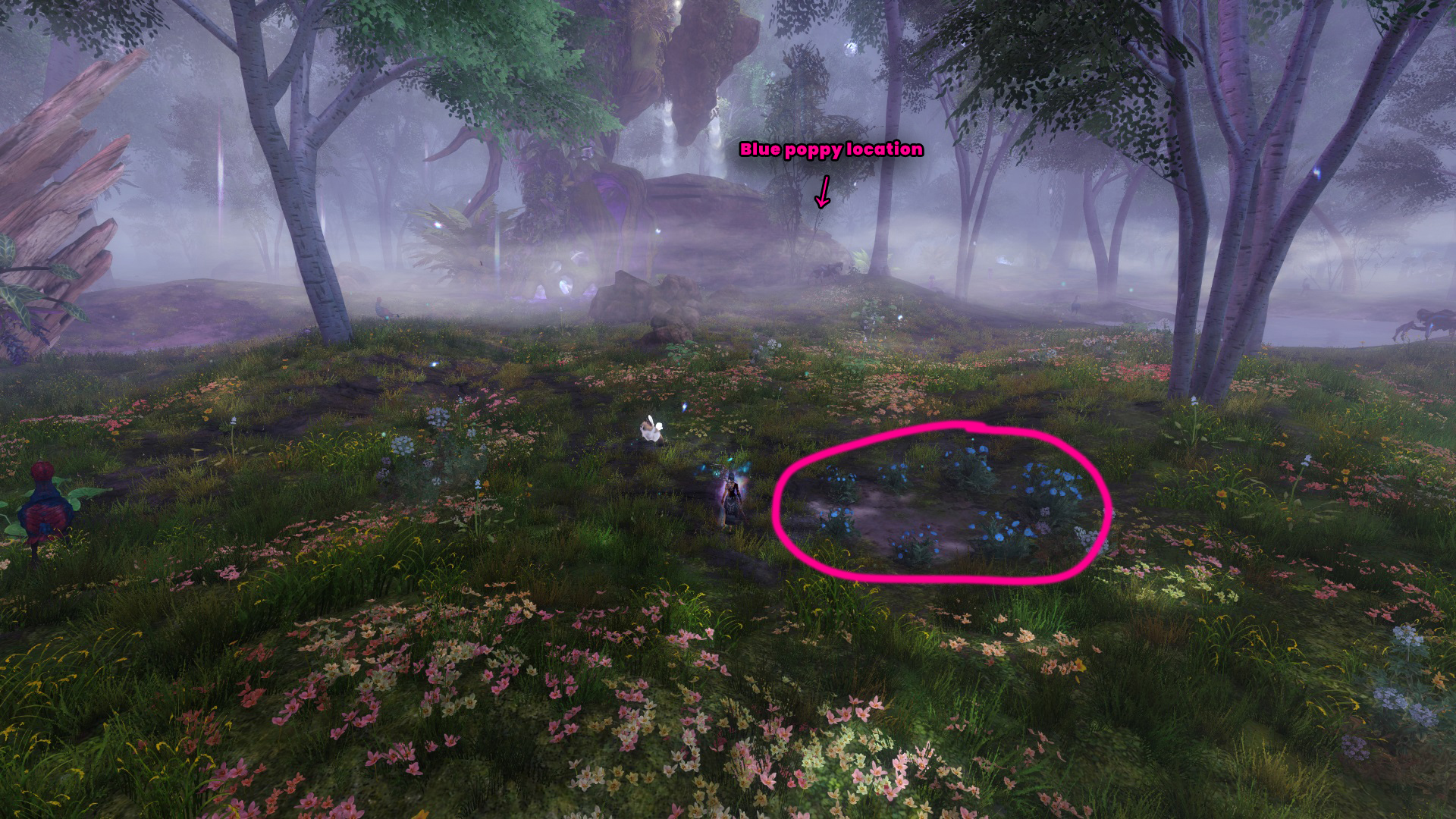 Go to the Foothold Bivouac Waypoint – [&BMAPAAA=], then head slightly northwest. You’ll find the blue poppy on a rock at the Twin Geysers point of interest – [&BJgPAAA=], and the blue poppy ring is just northwest of the poppy.