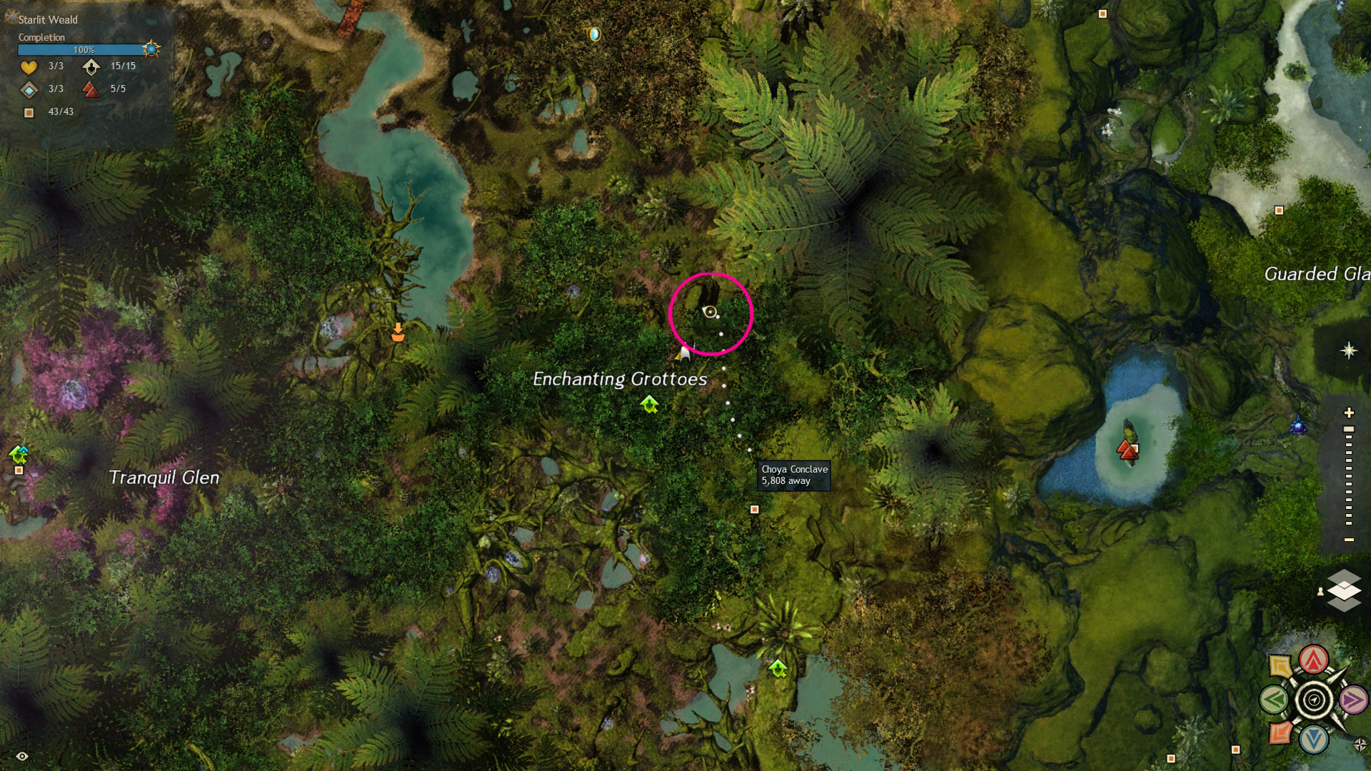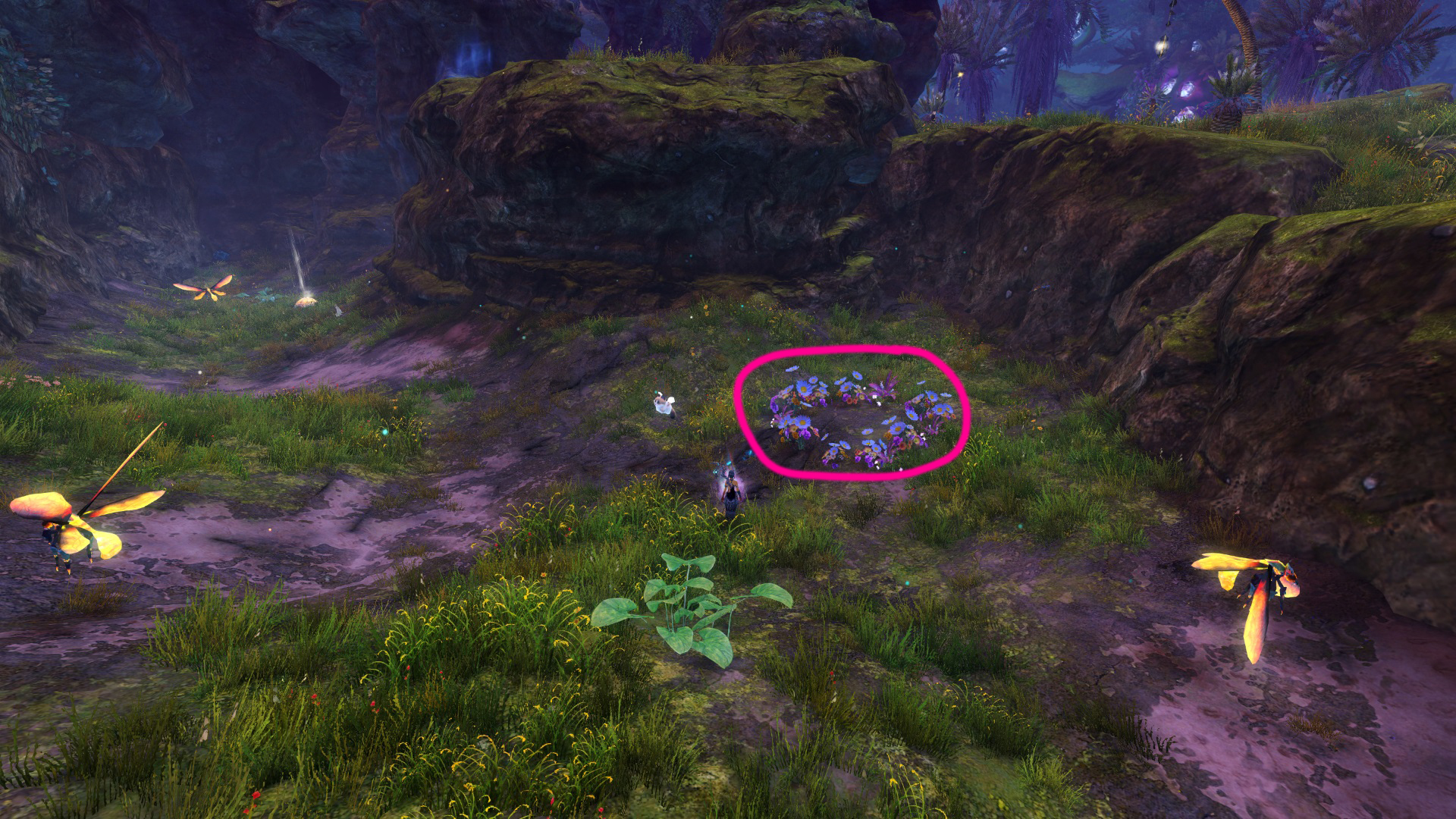 Go to the Foothold Bivouac Waypoint – [&BMAPAAA=], then head northeast. You’ll find the wildflower in a cave at the Choya Conclave point of interest – [&BNQPAAA=], with the wildflower ring just outside the cave to the north.