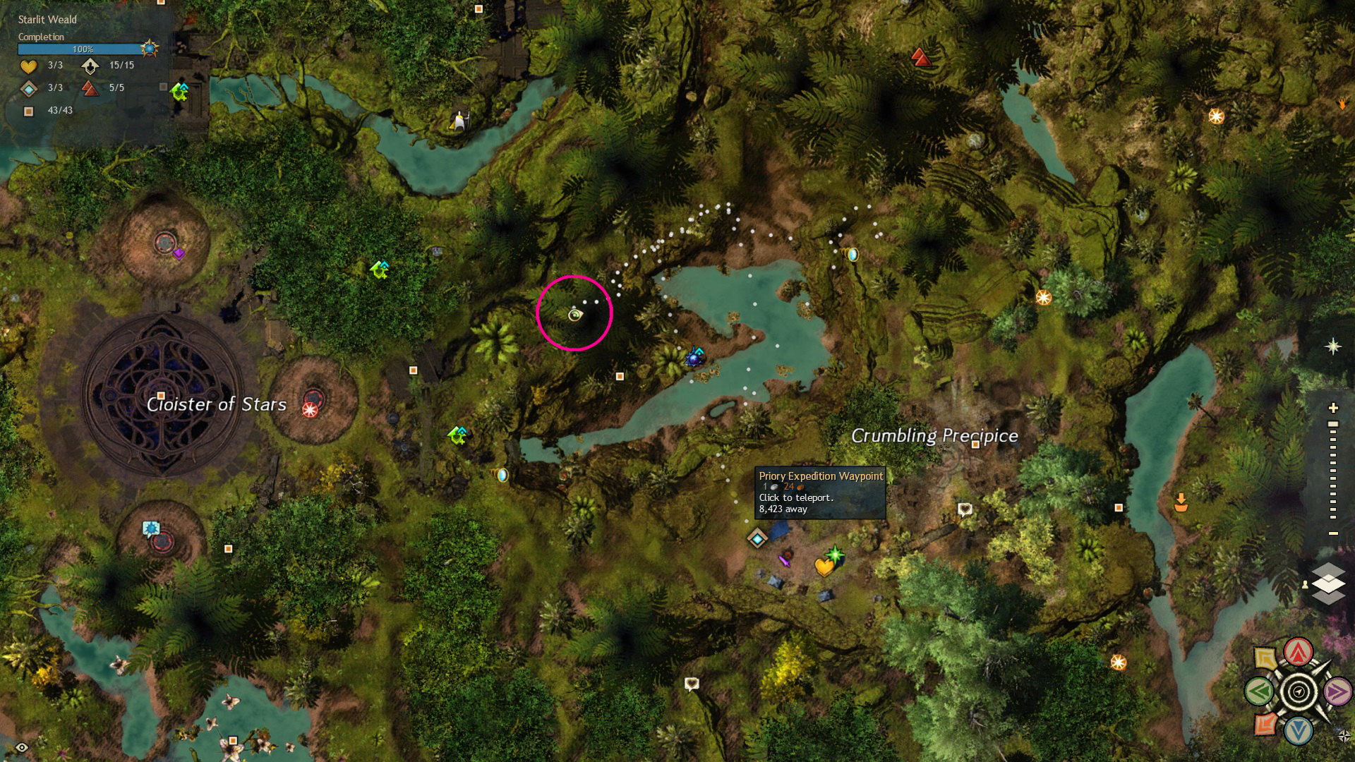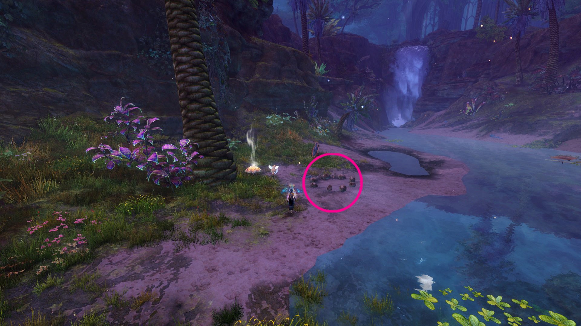 Go to the Foothold Bivouac Waypoint – [&BMAPAAA=], then head slightly southeast. You’ll find a small pond with a rock beside it, and the rock ring is next to Cattra.