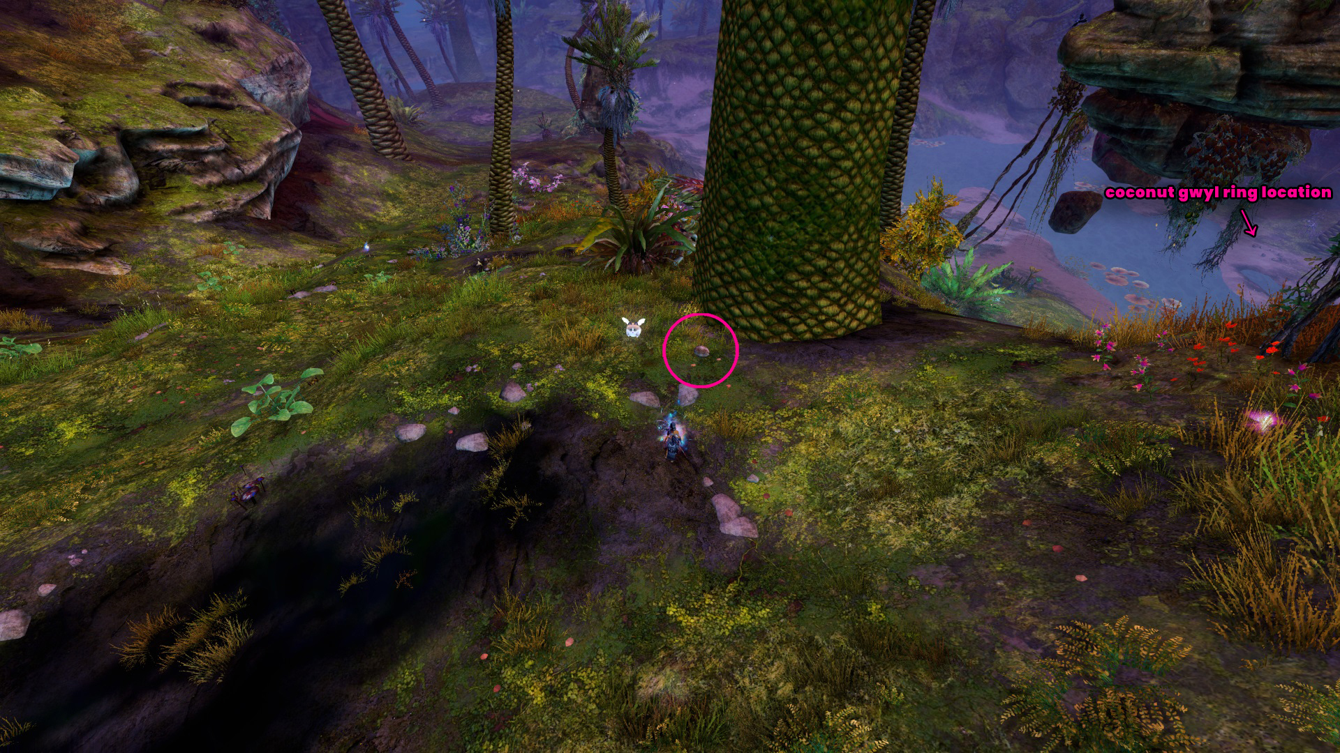 Go to the Priory Expedition Waypoint – [&BJ4PAAA=], then head northwest. You’ll find the coconut behind a big tree, and the coconut ring is slightly southeast of the coconut, across the water.